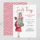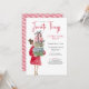Favorite Things Christmas Party Invitation. Invite friends and family for a Favorite things gift exchange party! Design features whimsical watercolor of a woman in red carrying a stack of presents tied with pretty bows.