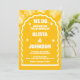 O nosso convite para o casamento, ao estilo retrógrado, é perfeito para o casal da moda, que ama se destacar e fazer uma declaração ousada. Nosso design apresenta uma combinação de cores amarela brilhante e amarela clara e arrojada. Formas simples de arco ondulado de abstrato criam uma aparência ousada com "Fazemos". Mostradas ousadamente em letras grandes brancas. O verso apresenta um simples design moderno, com um monograma ousado e um endereço opcional do site de casamento do casal.