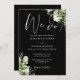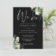 Este elegante convite de casamento floral botânico preto-e-branco pode ser personalizado com suas informações em tipografia química com seus detalhes do site de casamento e seu código QR no verso. Projetado por Thisnotme©