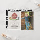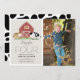 Este belo e moderno convite fotográfico de aniversário, neutro em termos de gênero, apresenta um cavalo e uma vaca com um celeiro vermelho sobre um fundo bege claro enquadrado por uma fronteira branca. O verso apresenta um fundo branco com padrões de vacas negras. Personalize para suas necessidades. Você pode encontrar produtos correspondentes na minha loja.