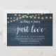 Belo Rico Nada, Apenas Amor, Anúncio de Elopemento de Casamento / Cartão de Convite de festas, em design Russo Moderno, Luzes de Cordas de Fazenda, Marinho de madeira de casota Blue temed. Isto é perfeito para a sua recepção de casamento e festa de celebração de posto. Projetado por TeeshaDerrick