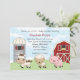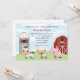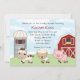 Personalize este convite para chás de fraldas com animais de criação adoráveis. Um celeiro vermelho, silo e céu azul turvo completam o design. Coordenar itens disponíveis, incluindo cartões de nota de agradecimento e etiquetas de endereço. Design © Convidando expressões (alguns elementos de design (copyright Scrappin Doodles)