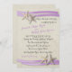 Starfish e roxo destino praia convite para o seu casamento no mar. Fundo do estilo da costa da meteorologia em tons de areia quente.