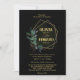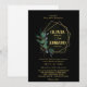 A imagem geométrica da folhagem verde do casamento negro Convite para o nosso versátil cartão de casamento combina-se perfeitamente com qualquer tema de casamento. A elegante combinação de uma moldura geométrica dourada, folhas verdes e douradas, garante uma perfeita harmonização com as configurações modernas e tradicionais. Quer você esteja planejando uma cerimônia íntima de jardim ou um caso de grande salão, esta carta adiciona sem esforço um toque de beleza eterno.