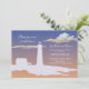 Os convites projetados do chá de casamento caracterizam a silhueta do farol do ponto do farol de New Haven Connecticut e da casa de campo do depositário contra um por do sol da aguarela. Lance o cartão sobre para encontrar uma imagem invertida do design, sem texto, para um toque adicionado da classe. Lá é nada genérico sobre seu casamento - por que use convites genéricos? Queira mudar o fraseio, as cores, as pias batismais, ou os outros detalhes para fazer-lhe seu? Contacte OrginalWorks e deixe-nos ser sua loja pessoal do design.