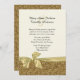 Convite feito sob encomenda elegante do casamento feito no creme, com gráficos de um ouro no design ornamentado do redemoinho do ouro, na parte inferior, do convite e da coberta a parte traseira. Gráficos de um cetim que olha a fita e o arco tan dourados, funcionamentos através da parte inferior. O texto preto está inteiramente customizável e pronto para personalizar para seu dia especial. Produtos de harmonização disponíveis.
