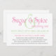Mais palavras para ajudá-lo a encontrar este são convites do chá de fraldas, açúcar e a especiaria, o bebê novo, os bebês, a menina, tipográfico, bebé, vintage moderno e chá de fraldas convidam.