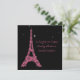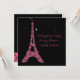 Doce temático à moda de Paris convite de 16 aniversários, feito no preto, com uma torre Eiffel cor-de-rosa e preta do damasco, na parte dianteira. A parte traseira do convite é feita no preto, com uma tira, na parte inferior, do damasco cor-de-rosa e preto. Personalize o texto cor-de-rosa, para sua celebração do aniversário das filhas 16a. Produtos de harmonização disponíveis.