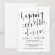 Este é um convite de casamento moderno e editável em letra preta (Felicidade Eterna Após o Jantar). Um cartão perfeito para convidar sua família querida e convidados para o anúncio do casamento às escondidas e celebração da festa de recepção. Adicione os detalhes da sua celebração no tipo de letra correspondente.