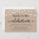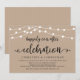 cartão de convitekraft marromluzes de corda rústicasfontes pretasconvites pós casamentofesta após o casamentocelebração de felicidade eterna