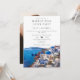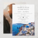 Este convite de casamento de fuga romântica para uma festa elegante e feliz para sempre em aquarela Santorini Grécia pode ser personalizado com suas informações em tipografia chic e foto especial no verso. Projetado por Thisisnotme