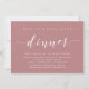 Marque o início do seu para sempre com elegância usando nosso convite de celebração de casamento com tema rosa poeira contemporâneo, "Happily Ever After Dinner". Perfeito para casais que desejam estender sua alegre ocasião, este convite emana sofisticação com um toque de jovialidade, preparando o cenário para um evento memorável. Adornado com um tema de design de letra moderna atemporal, ele adiciona um toque de charme refinado às suas festividades. Criado por TeeshaDerrick, este convite promete capturar lindamente a história do seu amor.