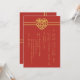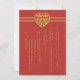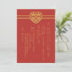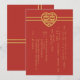 Linhas modernas e contemporâneas e limpas com elementos tradicionais de casamento chinês, este convite de casamento é ótimo para casais chineses que estão se casando! O caractere chinês que significa dupla felicidade, usado para a felicidade conjugal, é adaptado em um formato de coração. O texto amarelo em dourado falso contrasta bem com o fundo vermelho. Personalize facilmente com os detalhes do seu casamento em texto chinês!