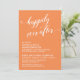 Aqui está uma escolha divertida e simples para as necessidades da sua celebração pós-casamento. Sobre um fundo sólido editável, coloquei um gráfico de tipografia que diz "felizes para sempre" apresentando uma fonte de roteiro elaborada e adornada com corações. Abaixo disso, seus detalhes aparecem em uma fonte simples em letras maiúsculas. Use os campos do modelo para adicionar suas próprias informações e clique para personalizar ainda mais se desejar fazer qualquer modificação adicional. Todas as camadas estão desbloqueadas para permitir todo o posicionamento e controle de tamanho que você desejar.