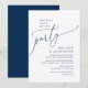 Lindo Moderno Casual Minimalista, fonte de letra azul-marinho, Festa de Elopamento de Casamento Felicidade Para Sempre, cartão de convite. Isto é perfeito para o seu casamento e festa de celebração pós-casamento. Adicione os seus detalhes na fonte / letra correspondente.