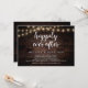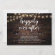 Linda celebração de Felicidade Para Sempre, cartão de anúncio / convite de casamento secreto, em madeira de fazenda rústica, design de luzes de corda. Isso é perfeito para o seu casamento e festa de celebração pós-casamento. Adicione seus detalhes em fonte / letra correspondente.