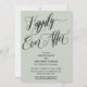 Usando uma fonte elegante, moderna e com curvas, criei uma sobreposição gráfica que diz "Happily Ever After", para complementar a sofisticada fonte serifada em maiúsculas usada para seus detalhes. O fundo verde sage pode ser alterado para qualquer cor de sua preferência. Todas as camadas foram adicionadas separadamente e deixadas desbloqueadas para lhe dar um controle significativo sobre o design; faça as modificações necessárias para criar o cartão que você imagina. E por favor, não hesite em entrar em contato comigo se precisar de ajuda com personalização ou tiver pedidos especiais. // 119 //