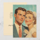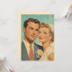 Uma ilustração romântica em estilo anos 50 de um casal recém-casado, radiante de amor e vestido com trajes de casamento clássicos. A imagem captura um sentimento atemporal de alegria e elegância, perfeito para decoração temática retrô, inspiração de casamento ou propaganda vintage.