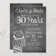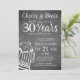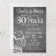 Animações informais e engraçadas e cervejas, homens com trinta cartas de convite de aniversário com um roteiro de tipografia de rico, uma caneca de cerveja de rabisco e rodopias em um fundo de quadro-negro de cinzas escuras e rústicas. ++++++++++++++ Adequado para qualquer festa de aniversário etária ou marco. Fácil de personalizar alterando a idade, o nome e os detalhes da festa!