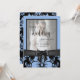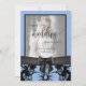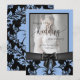 Feliz 25º aniversário de casamento foto tradicional com laço preto, padrão floral azul personalizado foto tradicional cartão de feliz aniversário com letra. Confira a elegante coleção de decoração de casamento e lar.