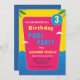 Azul Tropical Vermelho Personalizar Cartão de Convite de Aniversário de Festa de Piscina para aquela festa temática de Festa de Piscina para Crianças. Personalize para o seu filho.