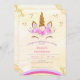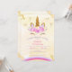 Convite de aniversário Unicórnio. Design bonito em ouro brilhante com sotaque floral. Roxo, lacado, ouro rosa e branco. Perfeito para uma comemoração mágica de 1rua. Faça isso por você ao adicionar seu texto. Para acessar ferramentas avançadas de edição, vá para "Personalizar", role para baixo e pressione o link "clicar para personalizar mais".