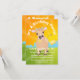 Está na hora da festa! Esta adorável e feliz vaca de jersey vai adicionar alguma diversão de fazenda a qualquer festa. Desenhado no estilo de ilustração de desenho animado em um campo ensolarado!