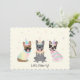 Uma bela ilustração cartoon de um Bulldog Francês vestido para uma comemoração de aniversário. Perfeito para cães, pais de cães ou amantes de animais de estimação no seu aniversário.0
