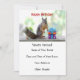 Foto de um esquilo fofo em pé ao lado de dois presentes embrulhados pequenos e olhando diretamente para a câmera. "Feliz Aniversário!" é a legenda, em tipo vermelho.