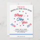 Convite para feliz ano novo de estrelas patrióticas, vermelho, branco e azul. Excelente para uma véspera de ano novo/festas ou evento de novos anos. Design unisexo para mulheres e homens. Adequado para crianças e adultos.