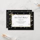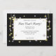Um convite de festas de Ano Novo com meu design de estrelas de prata brilhante e douradas e sinos em fundo preto e branco.