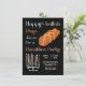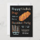 Feliz Dia de Challah! Comemore com este convite de festas de Chanucá. Possui uma moderna menorah estilizada e fontes e um grande pão de Challah em um paladar de cor neutra.