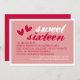 Feliz Coração Doce Dezesseis Convites de aniversário apresenta dois corações cor-de-rosa em um fundo rosa estriado diagonalmente. Ideal para aqueles que celebram um décimo sexto aniversário! © Manhã 6