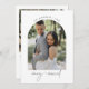 Esta feliz moderna e este cartão de Natal casado apresentam uma foto de arco de boho na frente e uma fonte de script manuscrita e elegante. Este cartões de agradecimentos é perfeito para os recém-casados minimalistas.