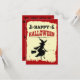 Ilustração feliz do Halloween com decoração de bruxas em uma armação vermelha grunge