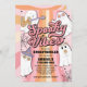 Um convite de aniversário "Spooky Vibes" para uma festa de aniversário de Halloween rosa ranzinza! Apresentando ilustrações bonitas de fantasmas hippie e tipografia retrô.