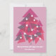 Natal de alegria personalizado e convite de cartão cor-de-rosa de feliz ano novo. Personalizar com mensagem, nome. Design moderno, cor-de-rosa, com árvore de natal colorida. Mande para a família, amigos, parentes ou pais. Cartão bonito e bonito com árvore de natal.