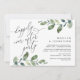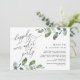 Belo Design romântico moderno, no eucalipto deixa a aquarela verde temida, Anúncio de Elopemento de Casamento, Cartão de Convite (Felizmente Nunca Depois da Festa). Isto é perfeito para a sua recepção de casamento e festa de celebração de posto. Adicione seus detalhes de comemoração de janto/brunch do elopement. #TeeshaDerrick