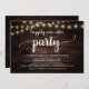 Bonita alegria, nunca depois do Convite de festas, anúncio de noivado/cartão de convite, em madeira de fazenda russa, design de luzes de cordas. Isto é perfeito para a sua recepção de casamento e festa de celebração de posto. Adicione seus detalhes em fontes / letras correspondentes. #TeeshaDerrick