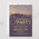Um convite para a graduação em estilo fotográfico moderno com formandos felizes jogando seus bonés no ar ao pôr do sol. Este design funciona bem para segundos graus, escolas de negócios ou de comércio, ou formandos universitários/universitários. O texto do ouro contrasta bem com a cor de fundo da ameixa profunda. Edite o texto de exemplo com os detalhes de sua parte.