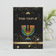 Convite Festival de Luzes Feliz Hanukkah. Bela Festa Judaica de Luxo Convite ou Cartão de Saudação. Feliz Hanukkah - texto em hebraico (manuscrito) Feriado judaico Hanukkah Fundo com luzes Bokeh e símbolos tradicionais do Chanukah - dreidels de madeira (pião), donuts, menorá, velas, estrela de David e padrão de papel de parede com luzes brilhantes, Moldura Dourada. Decoração do Festival de Hanukkah. Jerusalém, Israel. Convites e Material de Escritório, Cartões de Saudação, Convites e Anúncios Feriados e Temporada