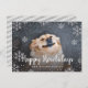 Na moda Pet de cartão de feriado com foto de cheio e cobertura de floco de neve com brilho prateado.