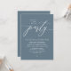 Marque o começo de sua eternidade com elegância usando nosso romântico e contemporâneo tema azul rústico e empoeirado tema de casamento carta de convite para comemoração, "Felizmente Nunca Depois da Festa". Perfeito para os casais estendendo sua alegre ocasião, este convite exude sofisticação com uma sugestão de brincadeira, definindo o palco para um evento memorável. Adorado com um tema design de roteiro moderno de eterno, ele adiciona um toque de encanto refinado às suas festividades. Feito por TeeshaDerrick, este convite promete capturar maravilhosamente sua história de amor.