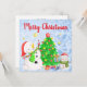 Convite Feliz Natal com Snowman e Child com Árvore