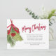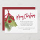 Este design apresenta um convite de Natal Feliz, de cor verde, com folhas de folhagem de inverno botânico, texto on-line do código QR, página de eventos nas redes sociais do Facebook, emblema de frutas de bagas de inverno, folhagem vermelha e verde, letra de roteiro de caligrafia na moda elegante, celebração de festas festivas, ilustração tradicional clássica de feriado, convite para festas de Natal