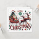 Espalhe alegria natalina clássica com este encantador design de "Feliz Natal"! Apresentando um jovial Papai Noel em seu trenó ricamente ornamentado, puxado por duas renas magníficas em pleno voo. A cena é adornada com elementos tradicionais de Natal, como uma árvore decorada, ornamentos festivos, flocos de neve e azevinho. O estilo inspirado no vintage e a paleta de cores quentes capturam a magia atemporal da época. Perfeito para cartões, roupas, decoração de casa e presentes para tornar qualquer celebração de Natal especial.