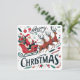 Entre no espírito natalino com este encantador design de "Feliz Natal" apresentando o Papai Noel em seu trenó, puxado por três renas voadoras! Adornado com ornamentos festivos, azevinho espiralado, flocos de neve e bastões de doces, este design intrincado captura a magia e a alegria da temporada. Perfeito para cartões de Natal, roupas, decoração de casa e presentes para espalhar alegria durante a época mais maravilhosa do ano.