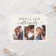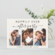 Elemento de creme leve ou anúncio privado de casamento e convite de recepção. A frente apresenta uma colagem de 3 fotos e "Felizmente Sempre Depois da Festa" em uma simples tipografia e um roteiro de na moda com pestanas, seus primeiros nomes se uniram por um coração e sua data de casamento ou recepção. No verso, personalize seu anúncio e convite e adicione seus nomes em um script semelhante a assinatura.