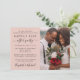 Moderno elopemento cor-de-rosa pincelado ou anúncio privado de casamento e convite de recepção que mostra sua foto e "Felizmente Nunca Depois da Festa" em uma mistura de simples tipografia e um roteiro chic, na moda, com picos. Adicione seus detalhes de festa ou recepção e seus nomes em um script semelhante a assinatura.