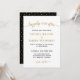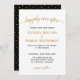 Convide seus convidados para comemorar seu dia especial extra com este convite de casamento moderno, preto e branco. Adicione seu próprio toque especial a este design simples e elegante que contém as palavras "feliz para sempre", definidas em uma tipografia dourada que flui, incluindo texto curvo e glifos longos de cauda, juntamente com um texto preto formal contrastante. Sinta-se à vontade para me contactar se precisar de ajuda ou de um pedido personalizado. Um fundo preto de coordenação com pontos de folha de ouro está atrás.